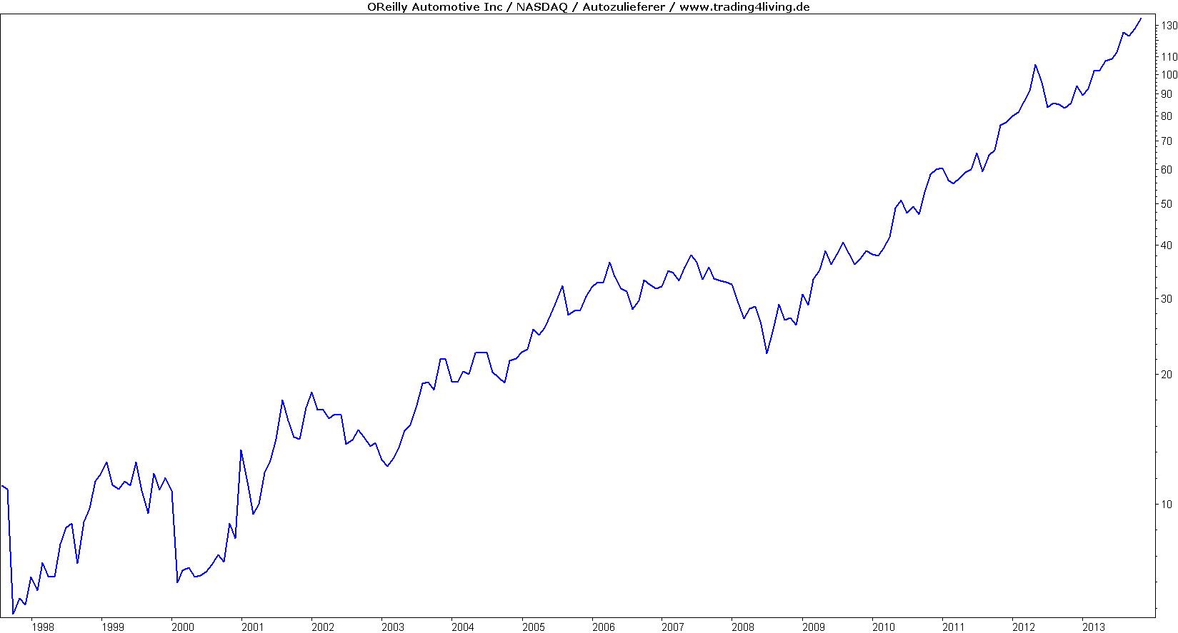 Abbildung: Die Geschichte von O’Reilly Automotive beschreibt den amerikanischen Traum. Der Ersatzteilehändler Charles Francis O’Reilly verdiente viele Jahre lang als reisender Vertreter sein Geld. Daraus schmiedete er einen Milliardenkonzern, den heute fast jeder Amerikaner kennt. Kein spannendes Geschäft, aber lukrativ für die Aktionäre.